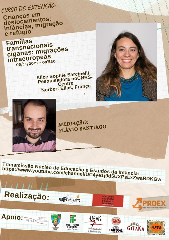 A temática do nosso 4º será “Famílias transnacionais ciganas: migrações intereuropeias”. Na primeira parte do encontro serão abordados os aportes históricos correlacionados a construção histórica, sociais e morais da infância e da parentalidade cigana e das políticas públicas para crianças e pais/mães ciganos/as. Na segunda, será apresentado os resultados de uma pesquisa etnográfica que envolveu pais/mães e crianças ciganas. A condução será do professor Flavio Santiago.